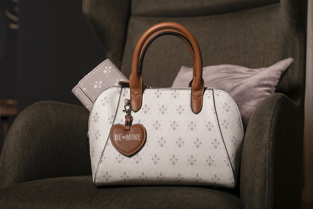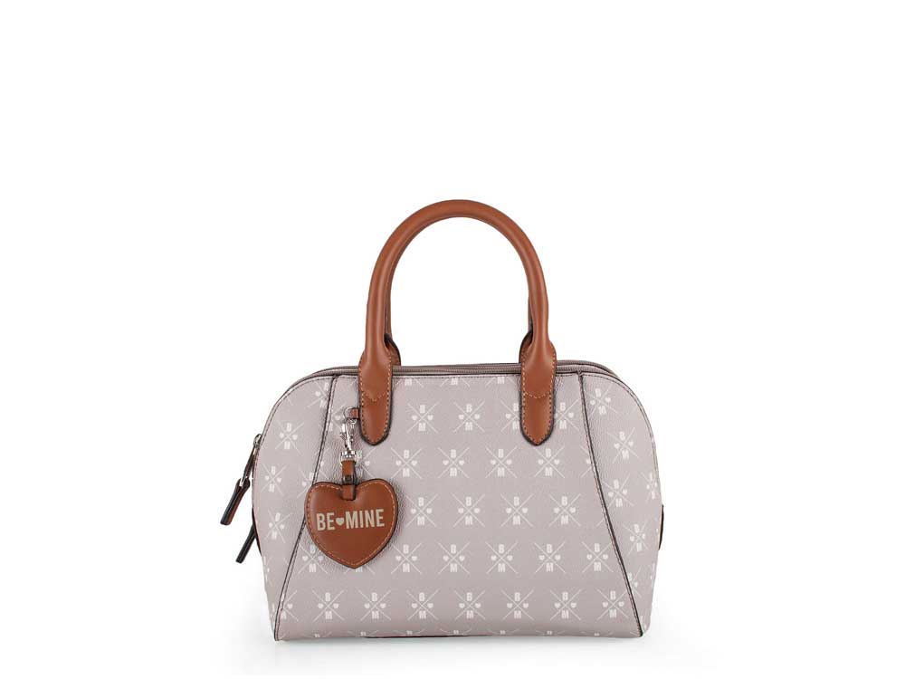 Die formschöne Kurzgrifftasche Sandy von BE MINE besteht aus zwei gleich großen Hauptfächern. Darin finden sich insgesamt drei Steckmöglichkeiten sowie ein Schlüsselhalter.